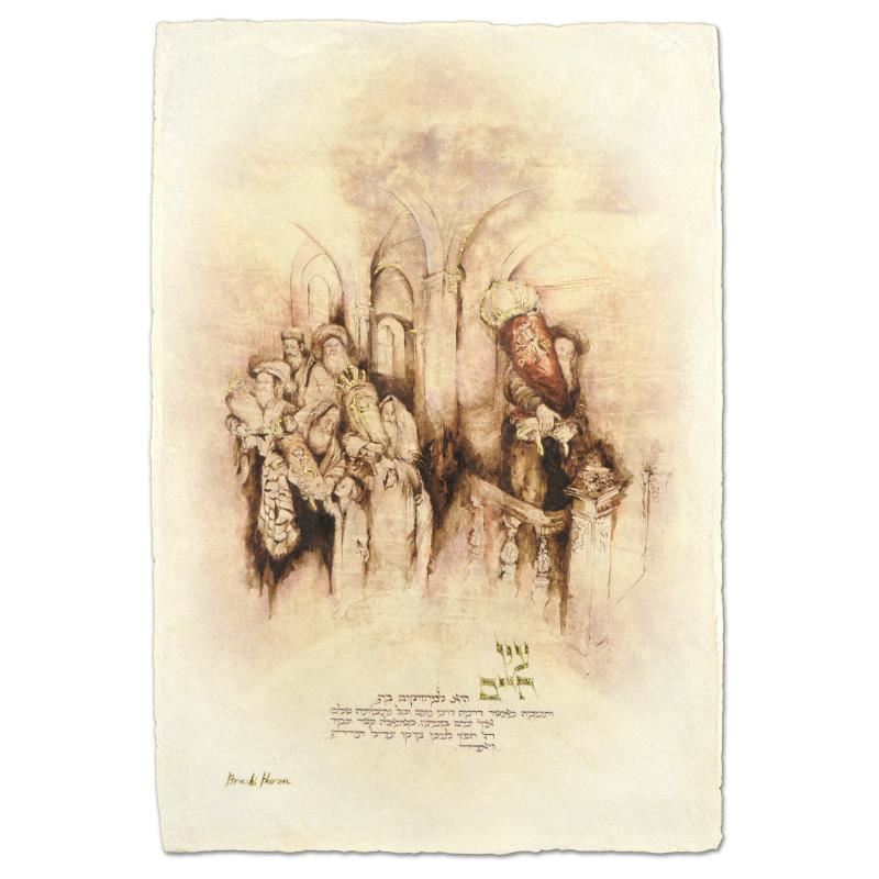 "Western Wall" is a mixed media giclee on handmade Indian paper with goldleaf by Brachi Horen, hand signed by the artist! This creation received personal attention by the artist in the form of water coloring and gilding. Includes Certificate of Authenticity! Measures approx. 15.5" x 23" (with border), 14" x 20" (image).