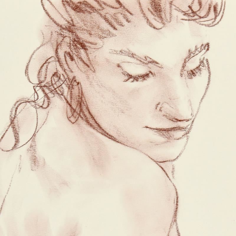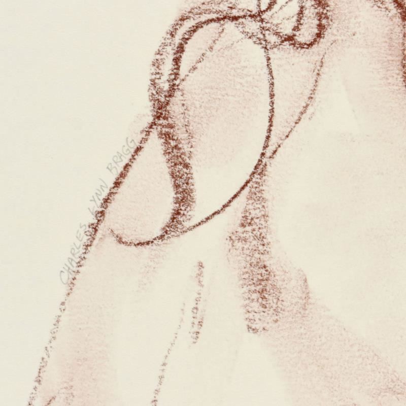 "Coy" is an original conte drawing on board by Charles Lynn Bragg, hand signed by the artist. Includes Letter of Authenticity. Measures approx. 16.5" x 10" (image).
