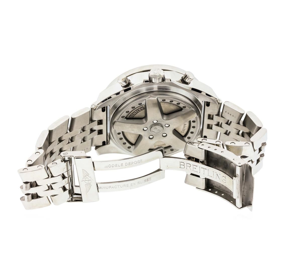 One Breitling Bentley Stainless Steel and Diamond Wristwatch. 58 diamonds with a total weight of 2.20cts with a color of (F-G) and clarity of VS2-SI1). 49mm case. Chronograph functions include hours, minutes, seconds, and date. GGA Appraised.