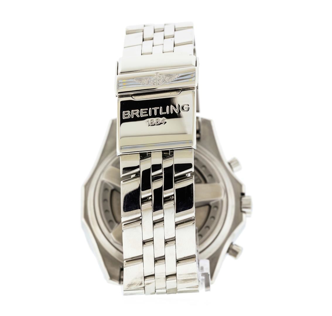 One Breitling Bentley Stainless Steel and Diamond Wristwatch. 58 diamonds with a total weight of 2.20cts with a color of (F-G) and clarity of VS2-SI1). 49mm case. Chronograph functions include hours, minutes, seconds, and date. GGA Appraised at $16,240.00.