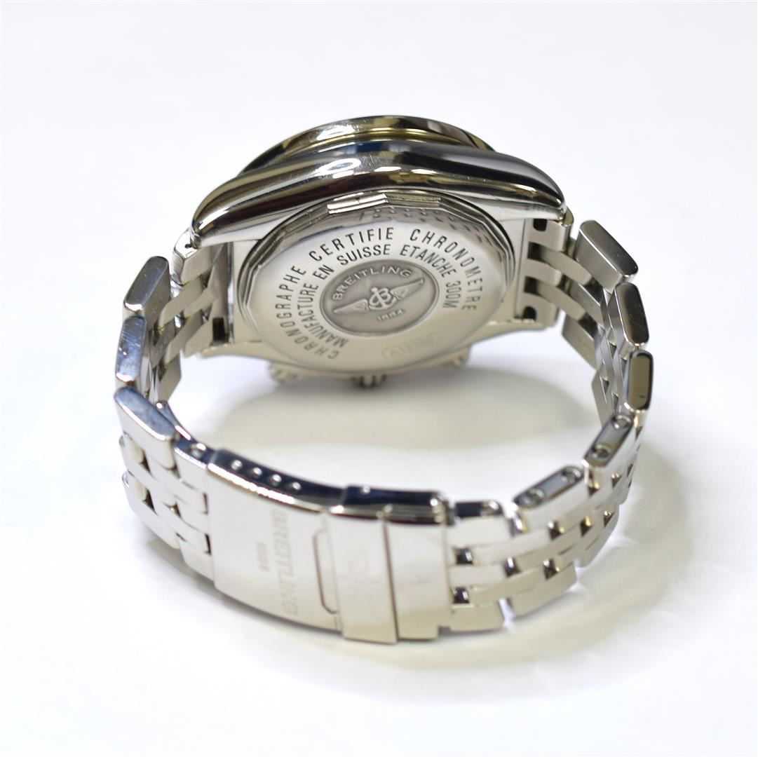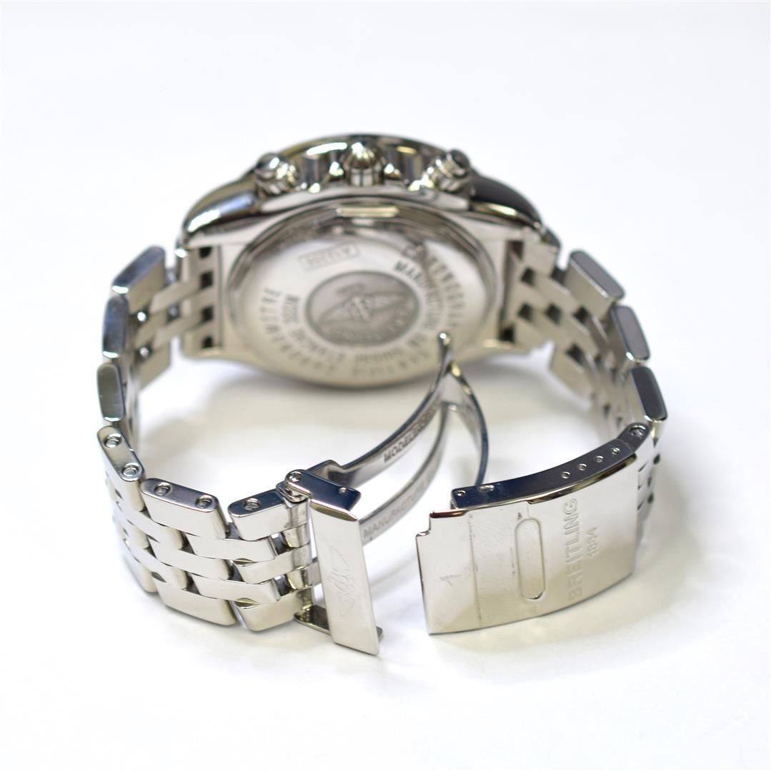 Breitling Mens Chronomat Evolution Stainless Steel 43.7mm Gray Dial Watch Polished & Electronically Tested. Model: Chronomat Evolution A13356. Case: Stainless Steel. Bezel: Custom made diamond bezel with round brilliant diamonds all set in prong setting. Total Diamond Weight: 4.00ctw. Clarity: VS-SI Color:G-H. Crystal: Sapphire Crystal. Bracelet: Stainless Steel. Dial: Gray Stick Dial. Date Window: 3 O'clock Position. Movement: Automatic Winding Movement. Water Resistant: Yes. Case Size: 43.7mm. Condition: Pre Owned, Watch is free of all Scratches and Dents, Extra Fine G-6.