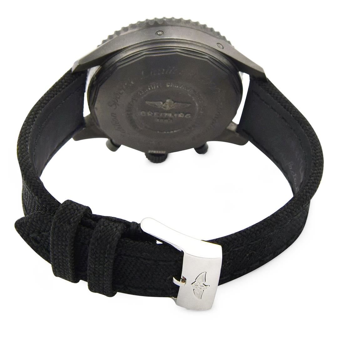 Breitling Mens Navitimer Stainless Steel 48mm Black Dial Watch Polished & Electronically Tested. Model: Navitimer. Case: Stainless Steel. Crystal: Sapphire Crystal. Bracelet: Canvas Strap. Dial: Black Dial. Movement: Automatic Winding Movement. Water Resistant: Yes. Case Size: 48mm. Condition: Pre Owned, Watch is free of all Scratches and Dents, Near Mint G-7.