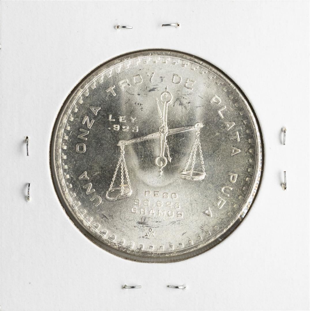 One Brilliant Uncirculated 1980 Mexico Una Onza Casas De Moneda Silver Coin.