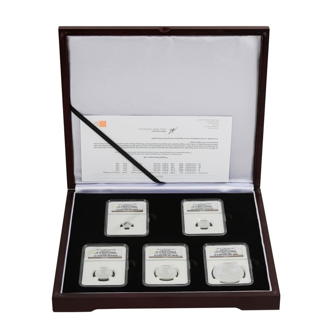 One Britannia 2015 (5) Coin Collection Proof Set NGC PF70 Ultra Cameo. NGC Certified.
