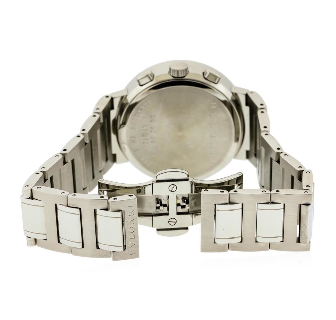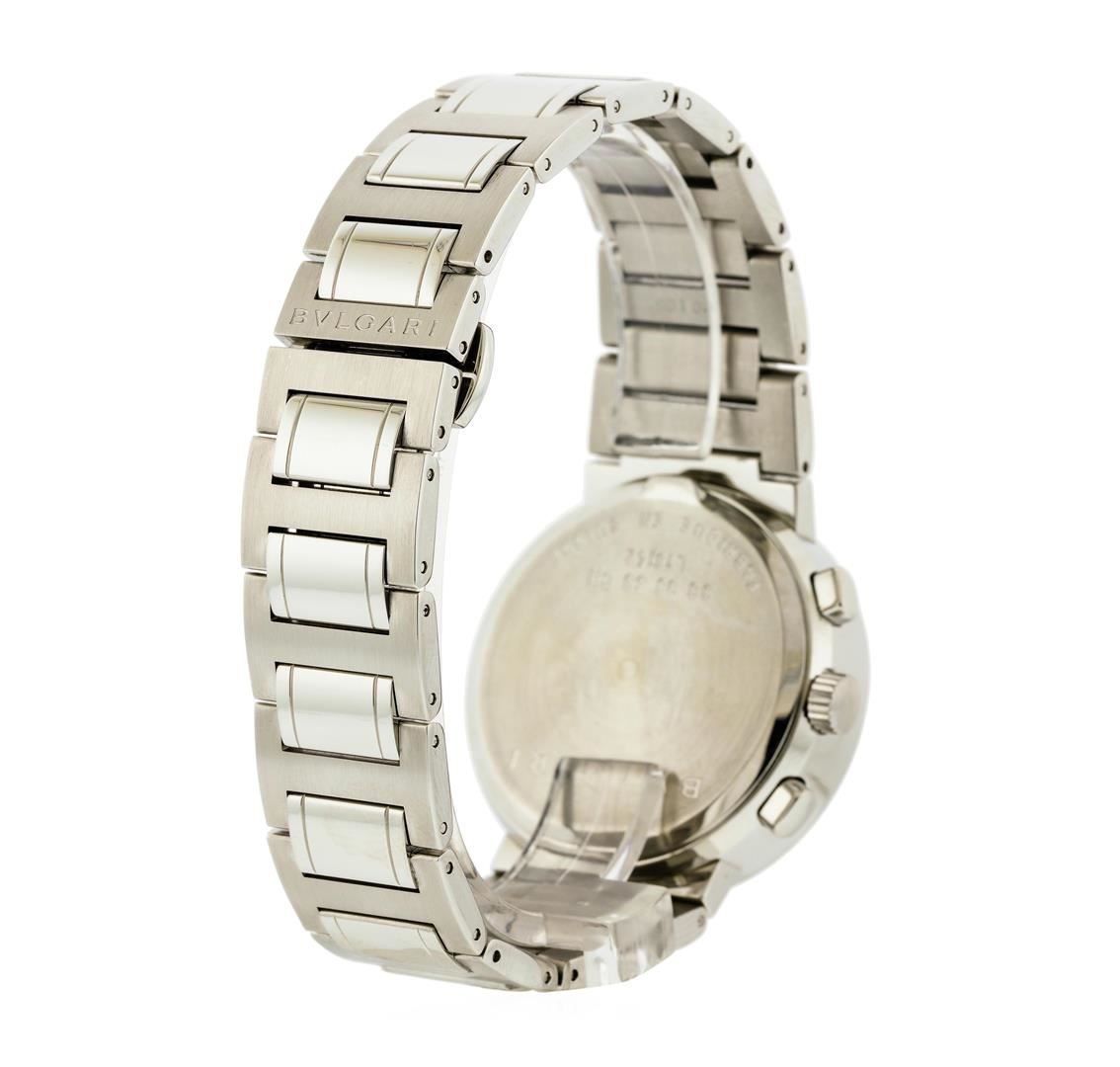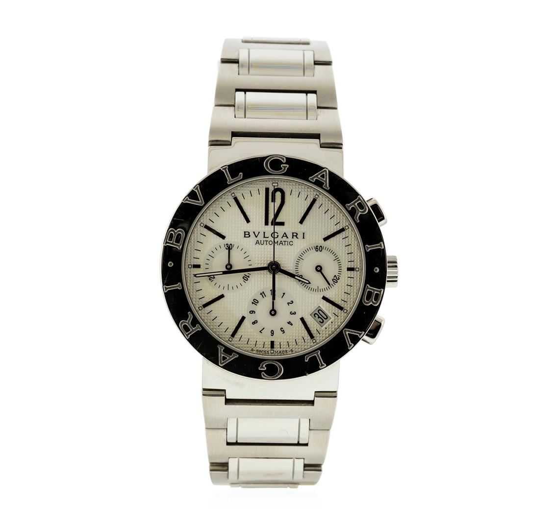 One Bvlgari Automatic Stainless Steel Wristwatch model BB 38 SS CH. The watch is in very good used condition and has the following features: Movement: Automatic, Case Size: 38mm, Case Material: Stainless Steel, Bracelet Material: Stainless Steel, Gender: Men's/Unisex, Crystal Material: Sapphire, Dial: White with silver markers and white chronographs. This watch does not come with a box or papers however we do guarantee it to be authentic.