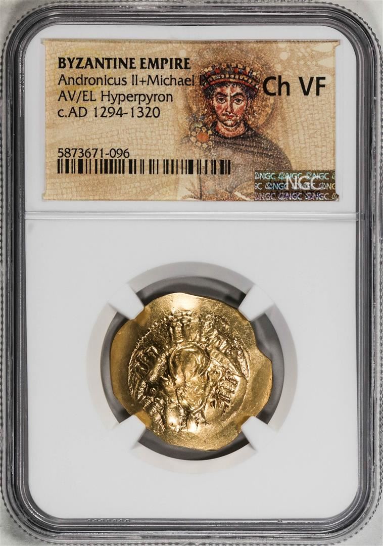 One Byzantine Empire 1294-1320 AD Andronicus II & Michael IX Hyperpyron Coin NGC CH VF. NGC Certified.