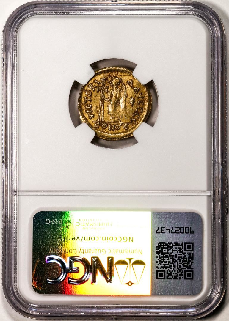 One Byzantine Empire 491-518 AD Anastasius I AV Solidus Ancient Gold Coin NGC VF. NGC Certified.