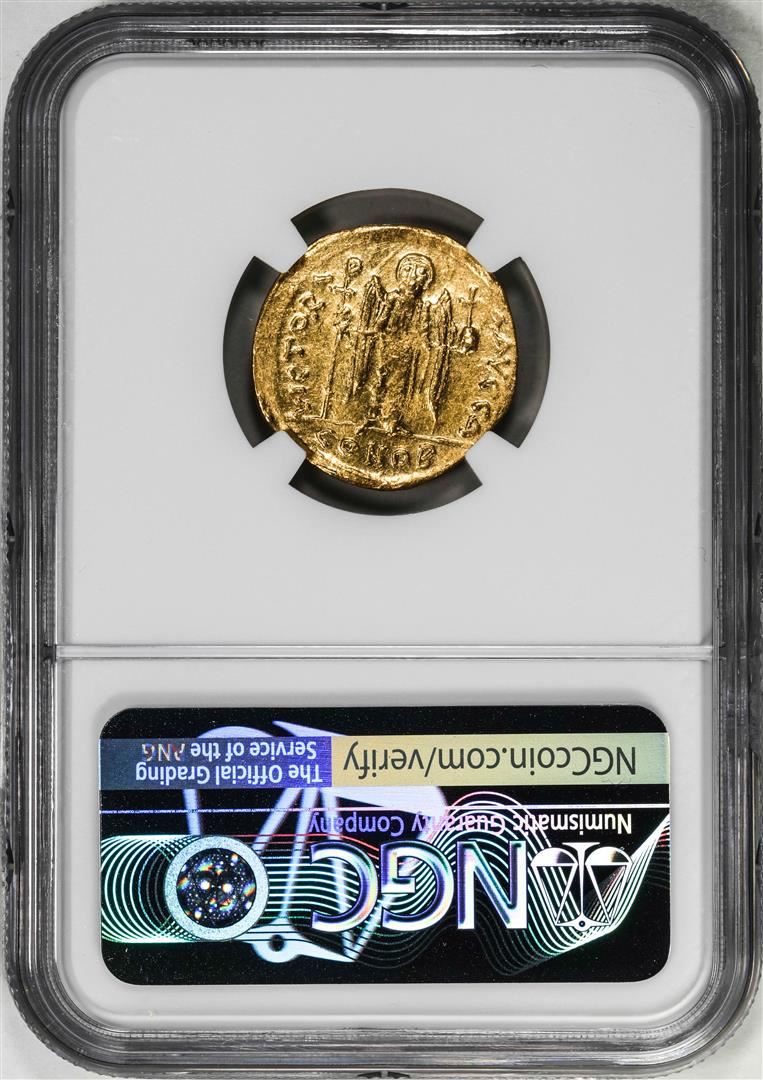 One Byzantine Empire 582-602 AD Maur. Tiberius AV Solidus Ancient Gold Coin NGC Certified. NGC Certified.