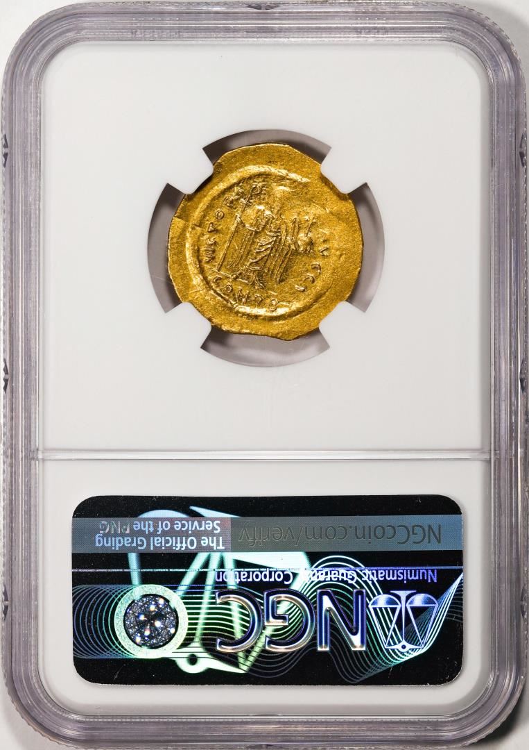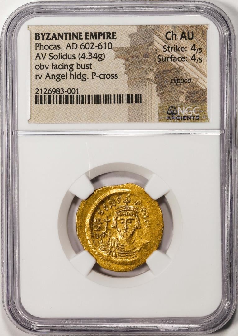 One Byzantine Empire 602-610 AD Phocas AV Solidus Ancient Gold Coin NGC Ch AU. NGC Certified.