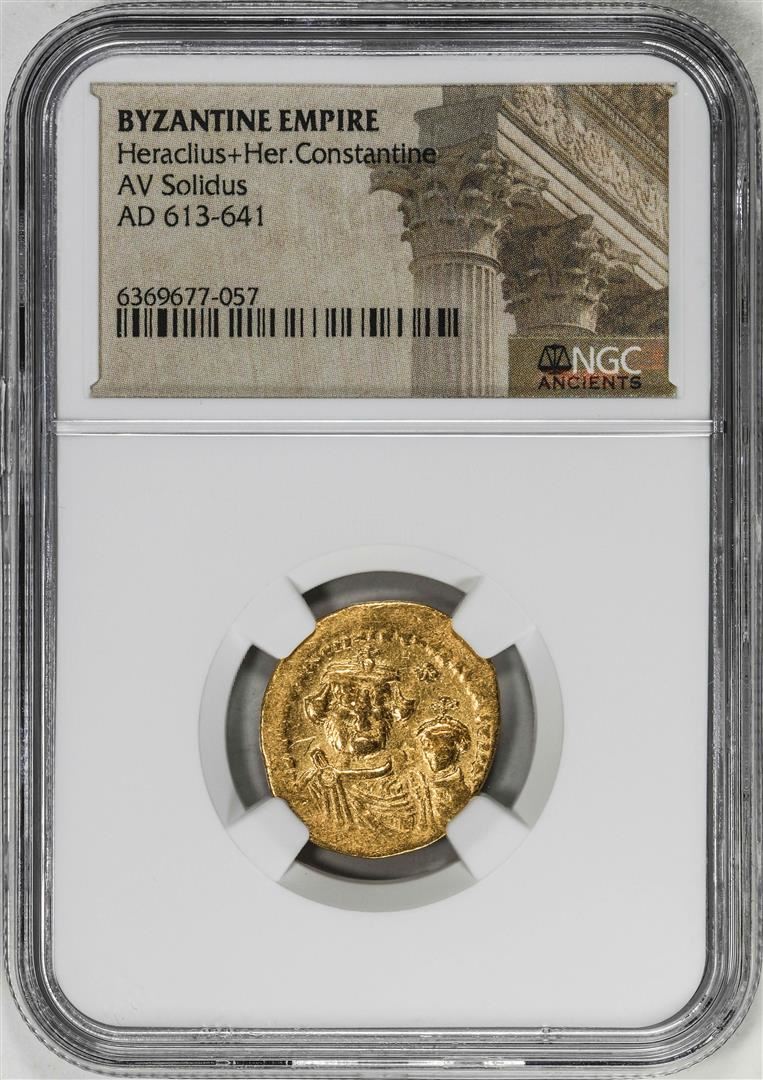 One Byzantine Empire 613-641 AD Heraclius & Her. Constantine AV Solidus Coin NGC Certified. NGC Certified.