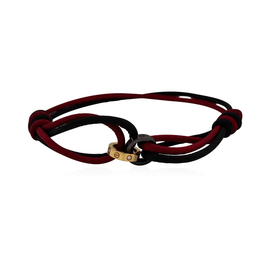 One Cartier silk cord bracelet featuring: 18KT rose and black gold weighing 1.0 grams containing one diamond weighing 0.01ct.