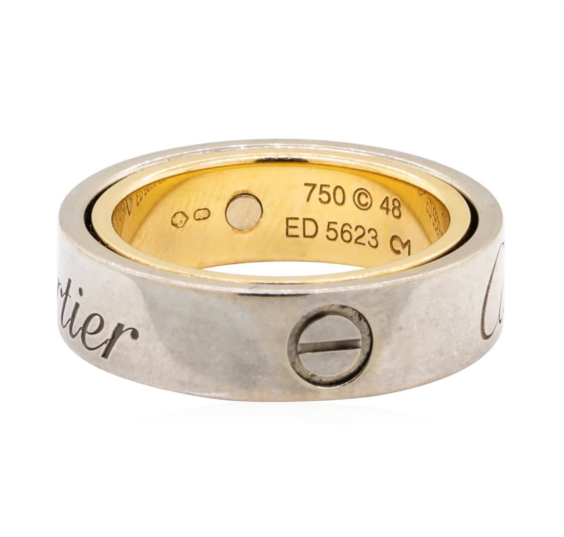 One Cartier Secret Love Ring featuring: 18KT white and yellow gold weighing 10.0 grams. The ring is a size 4.75.