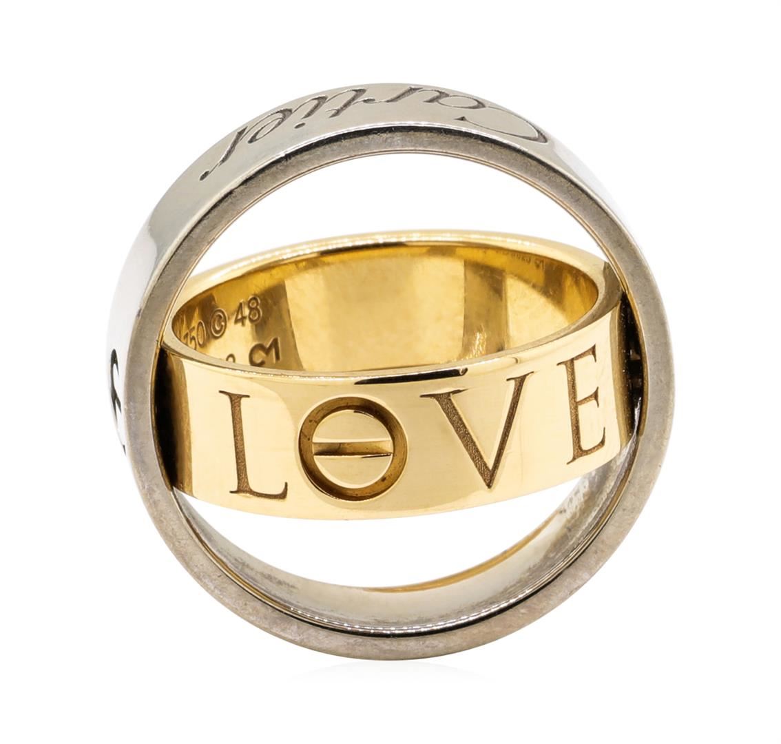 One Cartier Secret Love Ring featuring: 18KT white and yellow gold weighing 10.0 grams. The ring is a size 4.75.