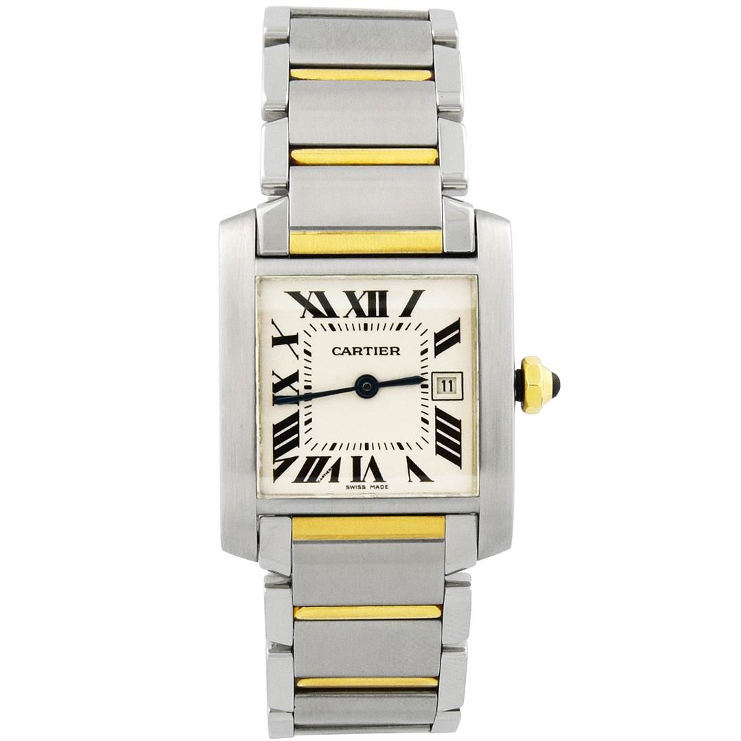 Cartier Lady Tank Francaise Stainless Steel 25mm Silver Roman Dial Watch Polished & Electronically Tested. Model: Tank Francaise, 2465. Case: Stainless Steel. Crystal: Sapphire Crystal. Bracelet: Stainless Steel. Dial: Silver Roman Dial. Date Window: 3 O'clock Position. Movement: Quartz Movement. Water Resistant: Yes. Case Size: 25mm. Condition: Pre Owned, Watch is free of all Scratches and Dents, Near Mint G-7.