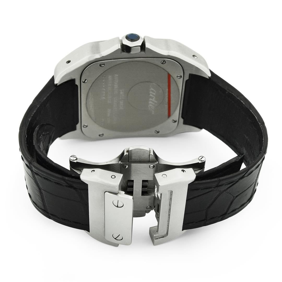 Cartier Mens Santos 100 Stainless Steel 41x51mm Silver Roman Dial Watch Polished & Electronically Tested. Model: Santos 100. Case: Stainless Steel. Crystal: Sapphire Crystal. Bracelet: Leather Strap. Dial: Silver Roman Dial. Movement: Automatic Winding Movement. Water Resistant: Yes. Case Size: 41x51mm. Condition: Pre Owned, Watch is free of all Scratches and Dents, Near Mint G-7.