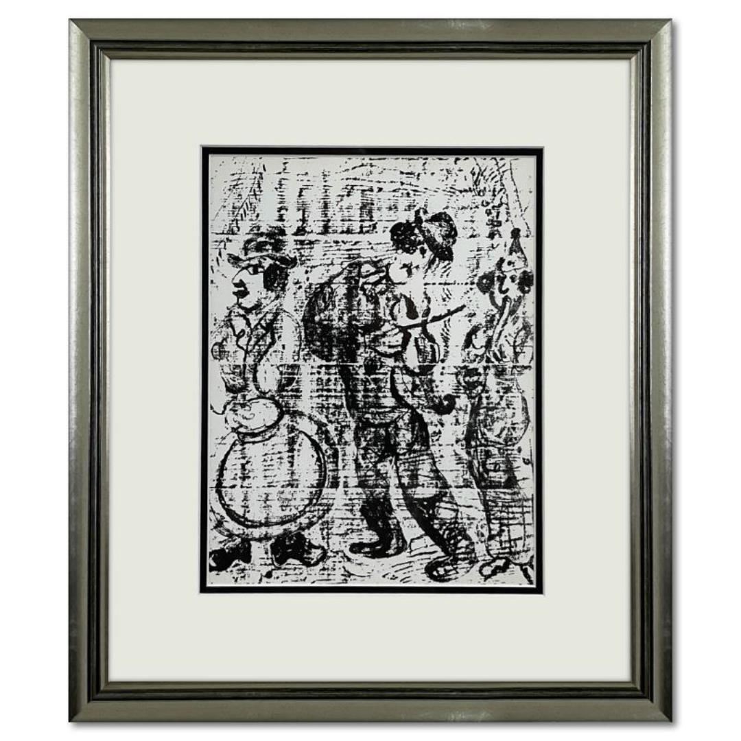"Les Musiciens Vagabonds" is a lithograph on paper by Marc Chagall (1887-1985). This piece comes custom framed. Includes Letter of Authenticity. Measures approx. 17" x 20" (frame), 9" x 12.5" (image).