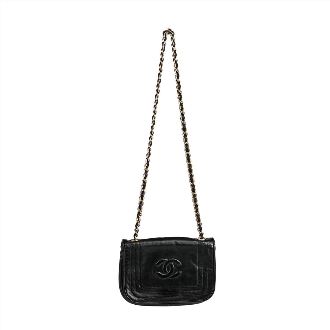 Authentic Chanel Crossbody Bag made of supple black leather featuring the iconic interlocking C logo stitched onto the front with gold-tone hardware. Snap closure flap design with leather lined interior and one zippered pocket. Purse is in great pre-loved vintage condition with some signs of wear. Please see pictures. Comes with Chanel felt dustbag for storage.