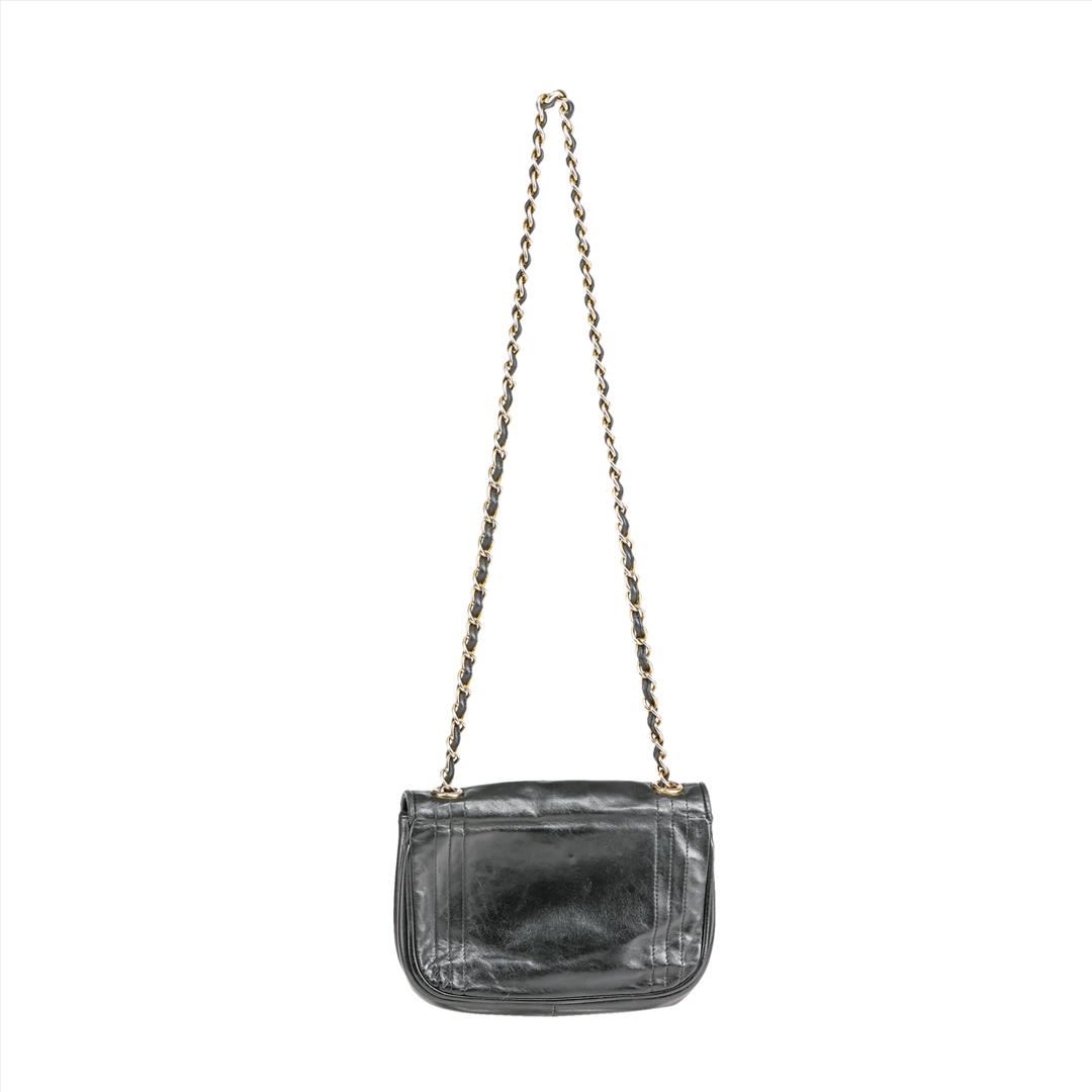 Authentic Chanel Crossbody Bag made of supple black leather featuring the iconic interlocking C logo stitched onto the front with gold-tone hardware. Snap closure flap design with leather lined interior and one zippered pocket. Purse is in great pre-loved vintage condition with some signs of wear. Please see pictures. Comes with Chanel felt dustbag for storage.