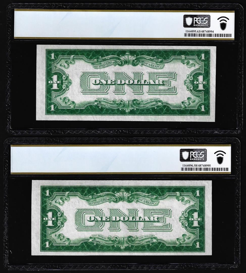 One Changeover Pair of 1928A/1928B $1 Silver Certificate Notes PCGS Choice Unc 63/AU 58PPQ. PCGS Graded.