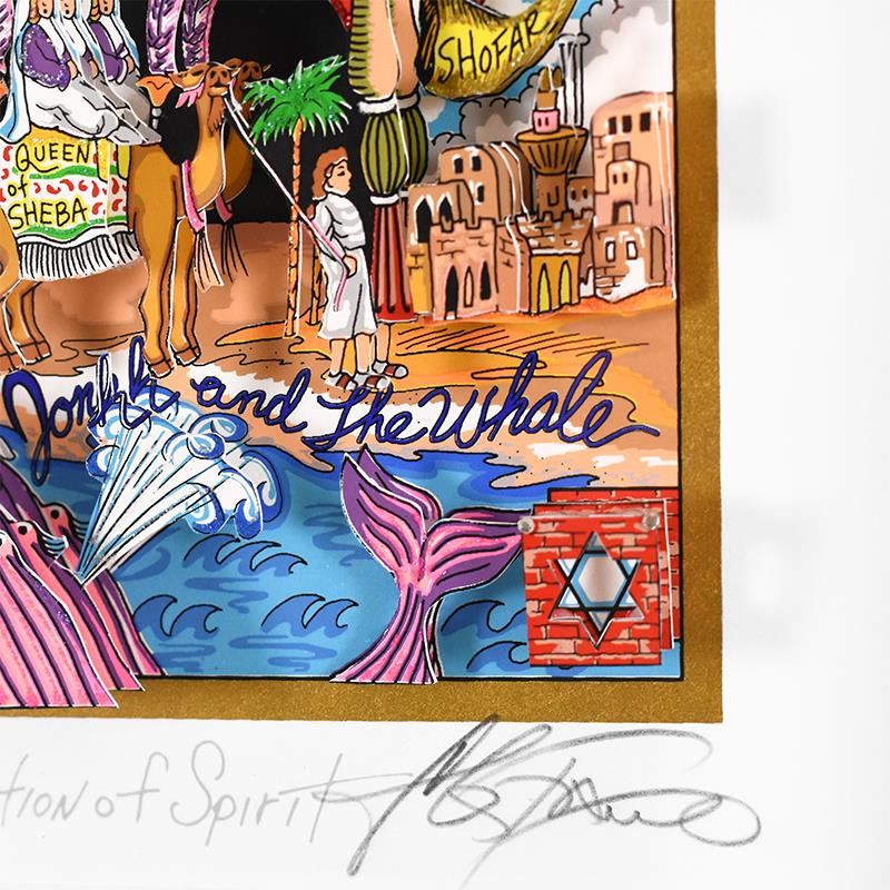 "A Celebration of Spirit" is a 3D limited edition silk screen construct on paper by Charles Fazzino, DX numbered 205/375 and hand signed by the artist. This piece comes custom framed. Includes Certificate of Authenticity. Measures approximately 16.5" x 44.5" (framed), 7.5" x 35" (image).