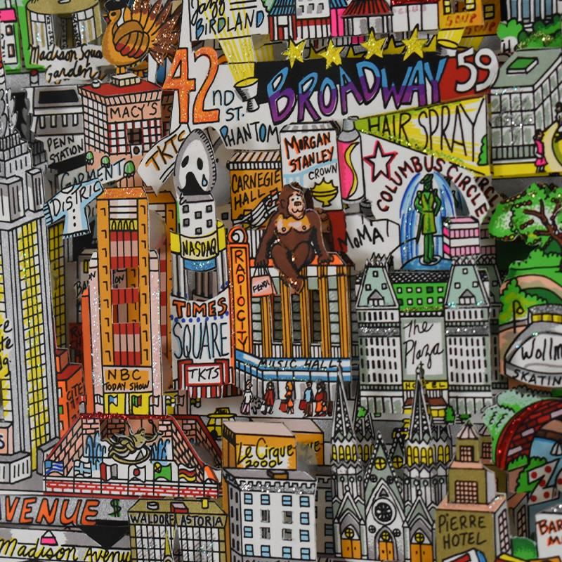 "NY Is (Red)" is a 3D limited edition silk screen construct on paper by Charles Fazzino, numbered and hand signed by the artist. This piece comes custom framed. Includes Certificate of Authenticity. Measures approximately 49.5" x 28.5" (framed), 40" x 20" (image).