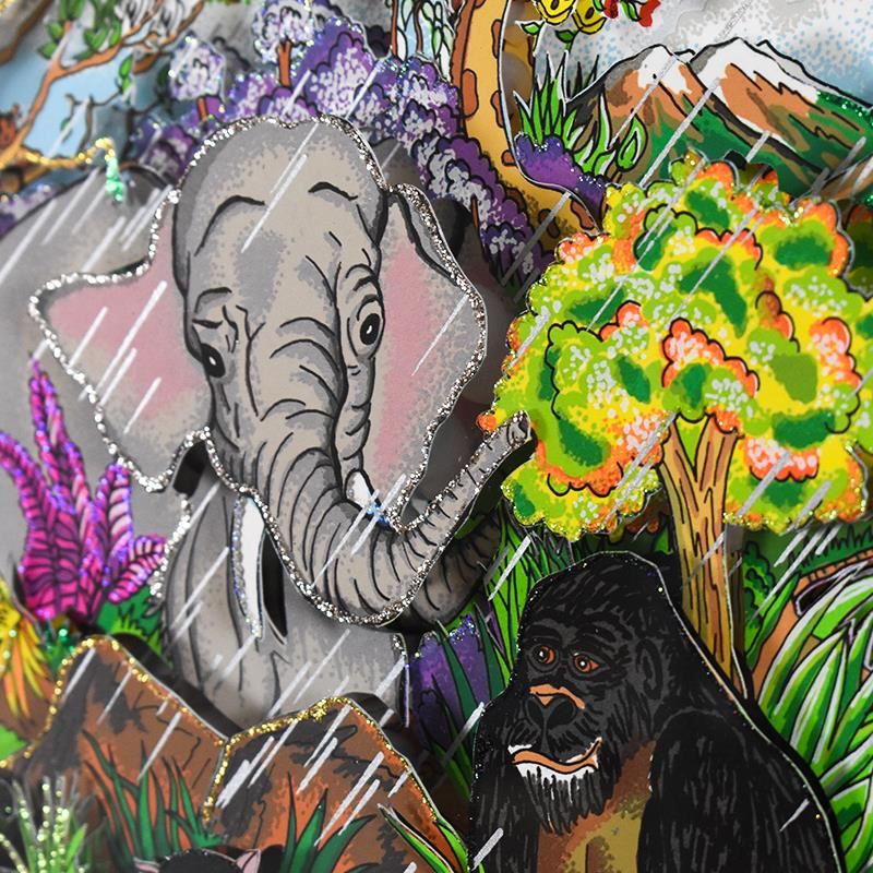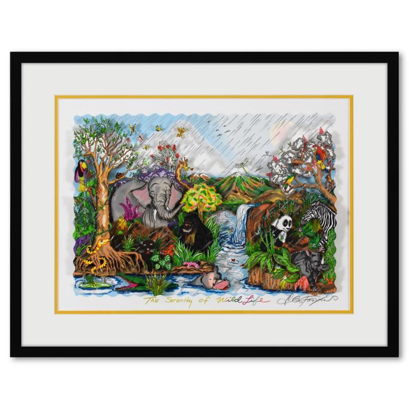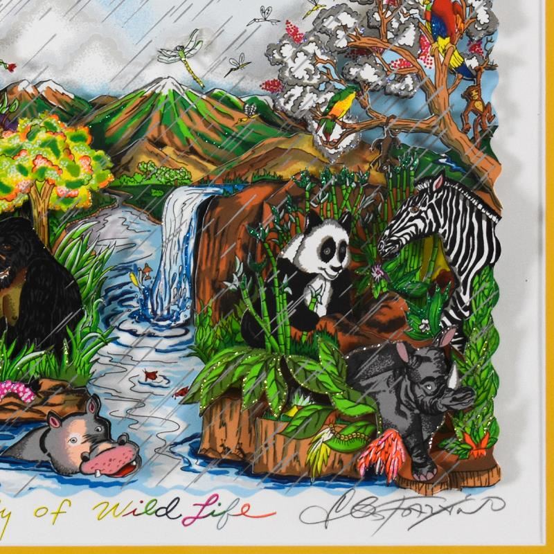 "Serenity of the Wildlife (Yellow)" is a 3D limited edition silk screen construct on paper by Charles Fazzino, numbered 52/150 and hand signed by the artist. This piece comes custom framed. Includes Certificate of Authenticity. Measures approximately 25.5" x 20.5" (frame), 17" x 12" (image).