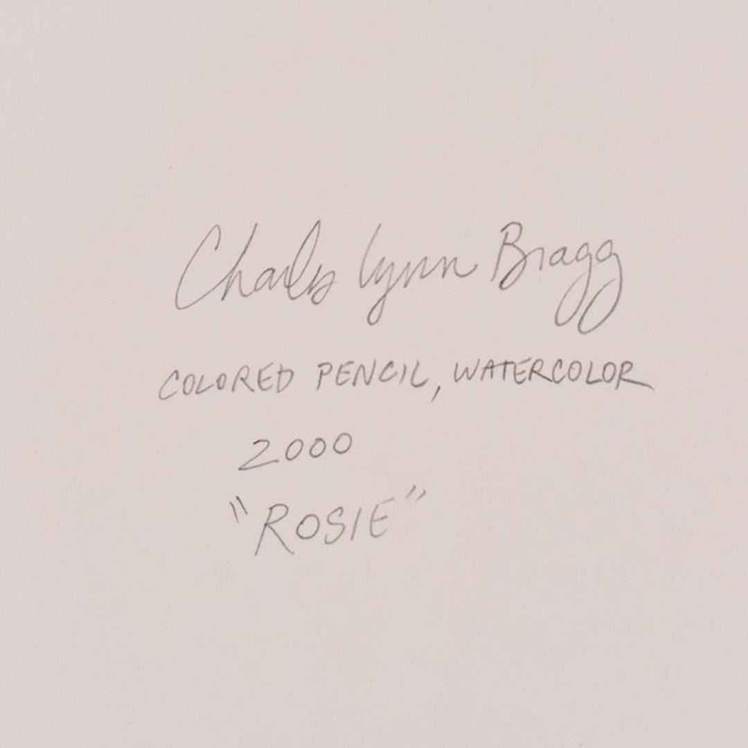 "Rosie" is an original mixed media watercolor painting on paper by Charles Lynn Bragg, hand signed by the artist. Includes Letter of Authenticity. Measures approx. 11" x 9" (image).