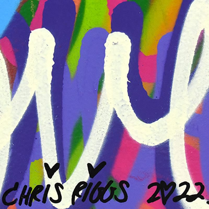 "Love" is an original spray paint painting on canvas by Chris Riggs, hand signed by the artist. This piece comes gallery wrapped. Includes Letter of Authenticity. Measures approx. 36" x 36" (image).
