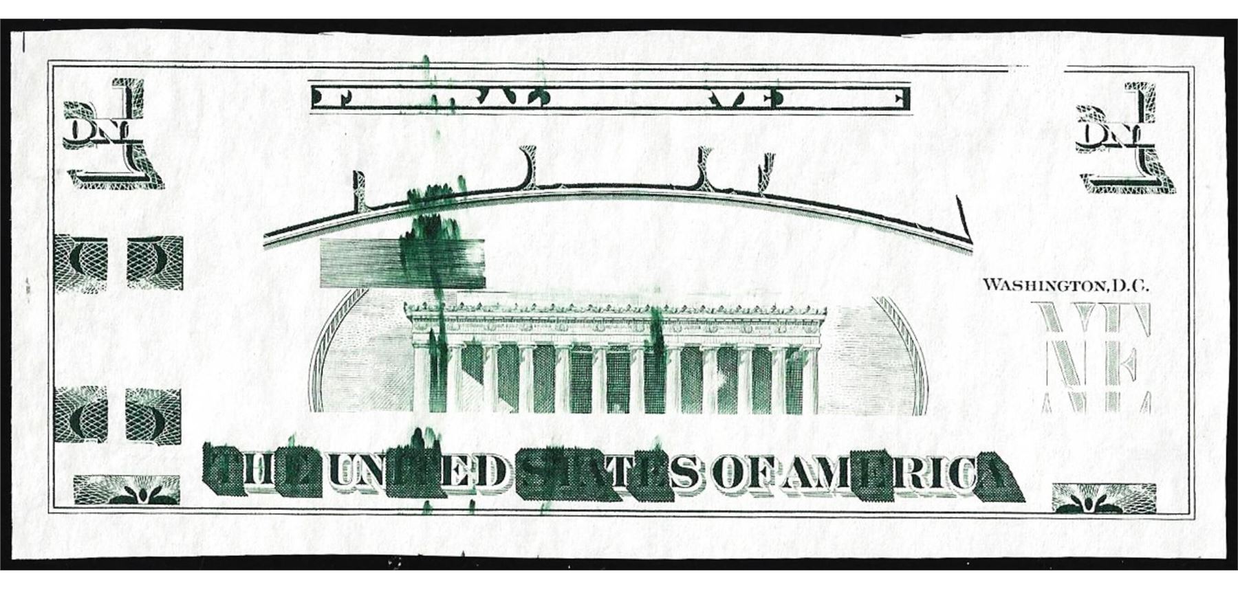 One Circa 1970's Lincoln Memorial Giori Test Ink Smear Error Note.