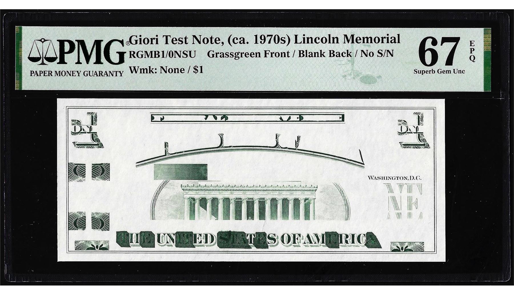 Circa 1970's Lincoln Memorial Giori Test Note PMG Superb Gem Uncirculated 67EPQ