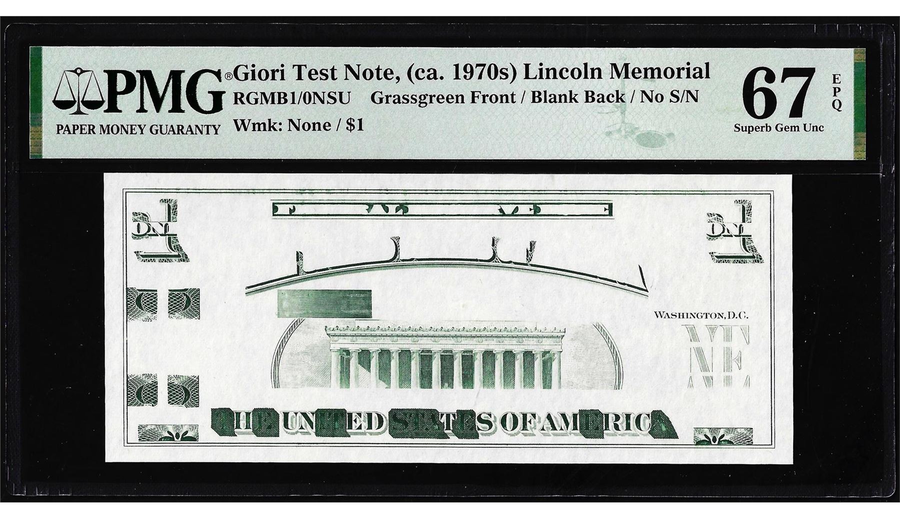 Circa 1970's Lincoln Memorial Giori Test Note PMG Superb Gem Uncirculated 67EPQ