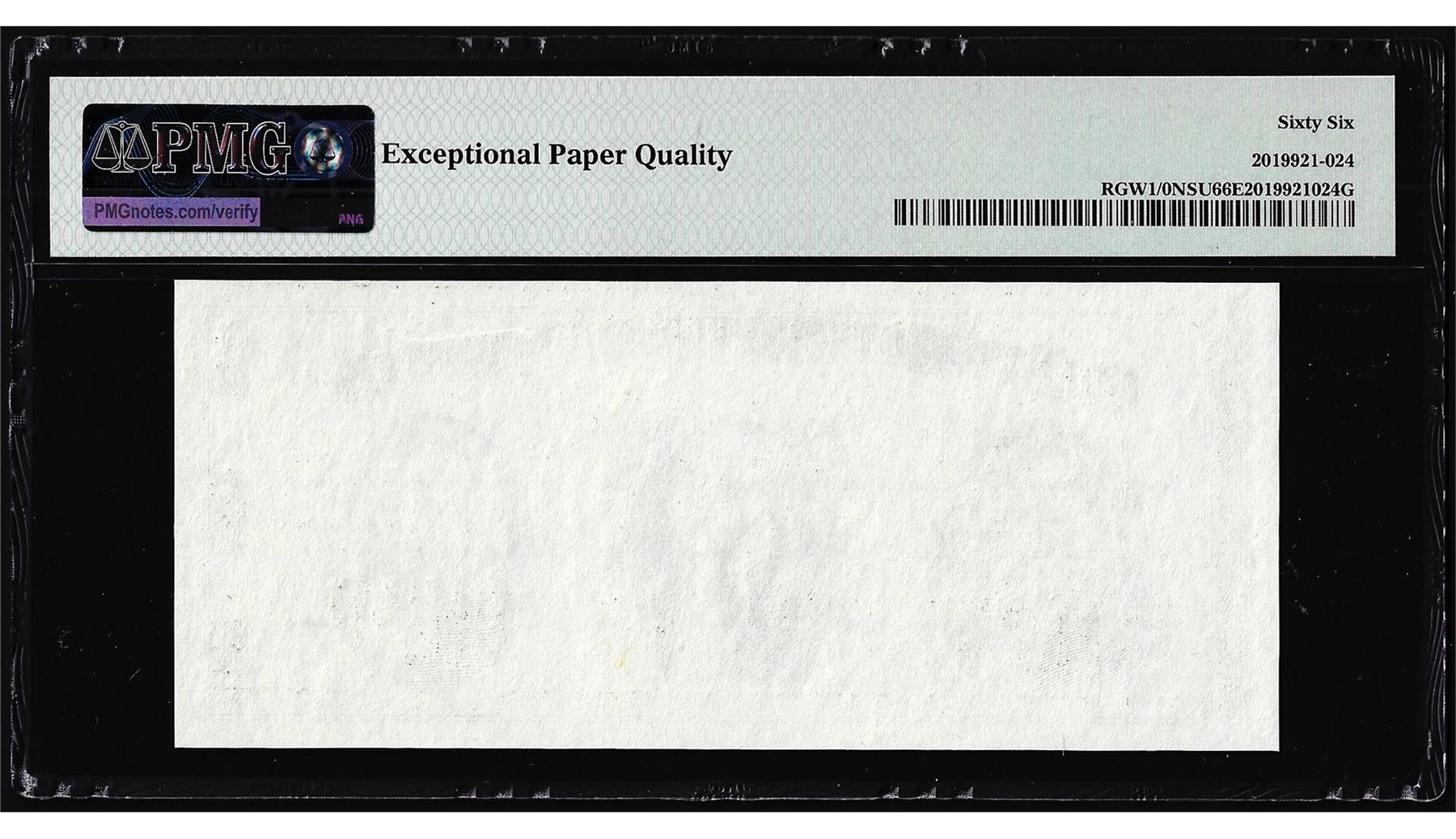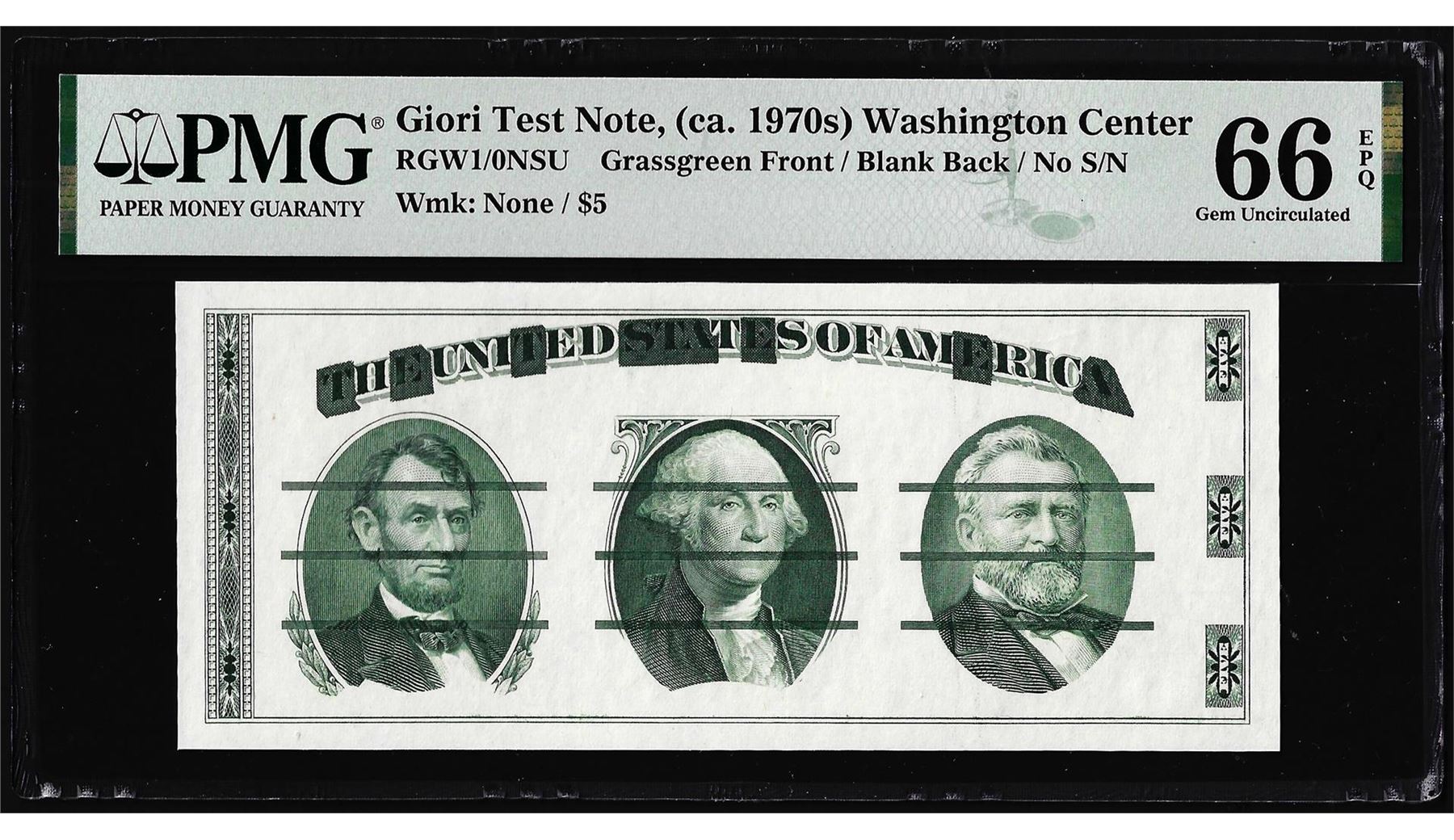 One Circa 1970's Washington Center Giori Test Note PMG Gem Uncirculated 66EPQ. PMG Certified.