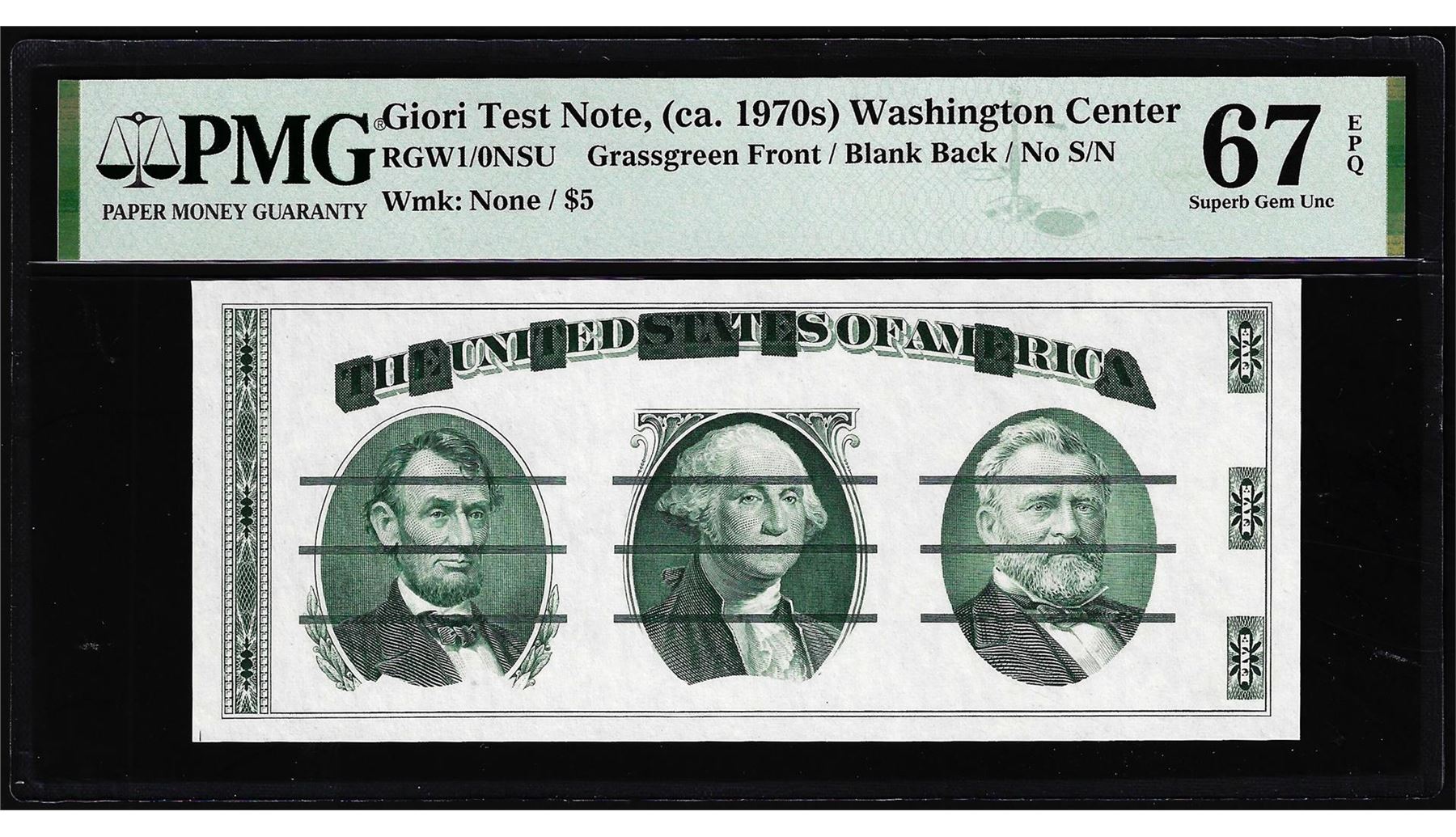 Circa 1970's Washington Center Giori Test Note PMG Superb Gem Uncirculated 67EPQ