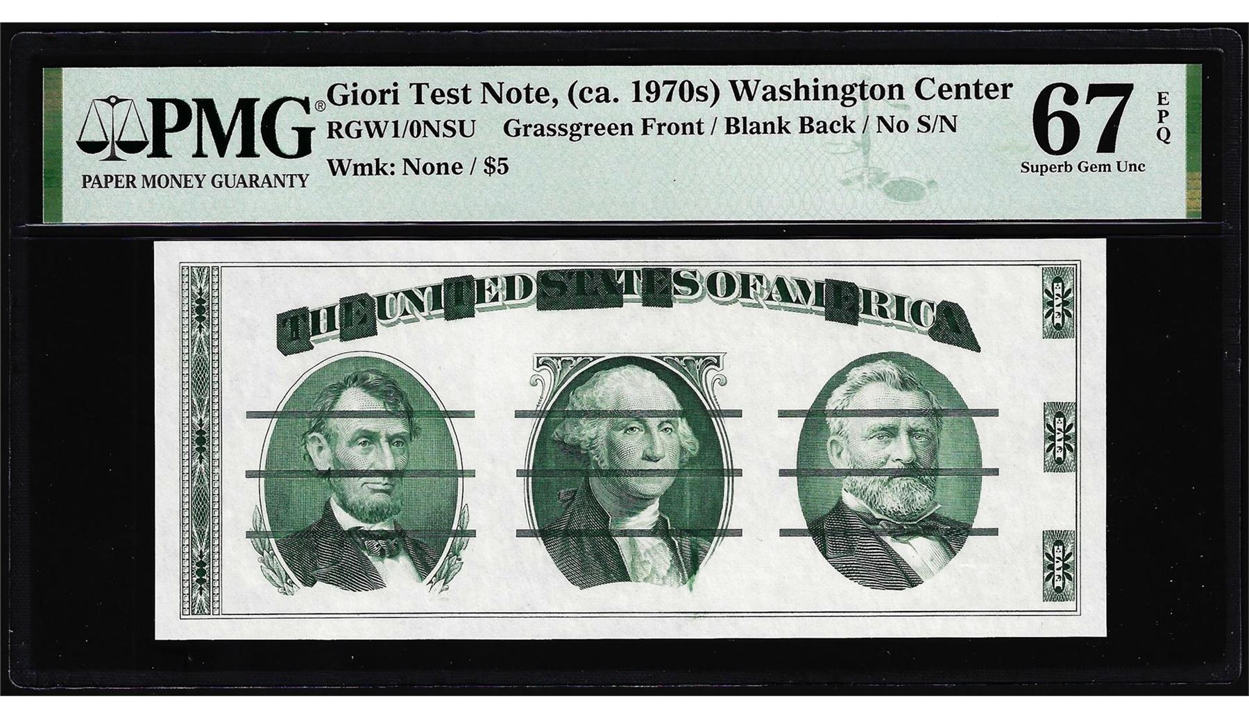 Circa 1970's Washington Center Giori Test Note PMG Superb Gem Uncirculated 67EPQ