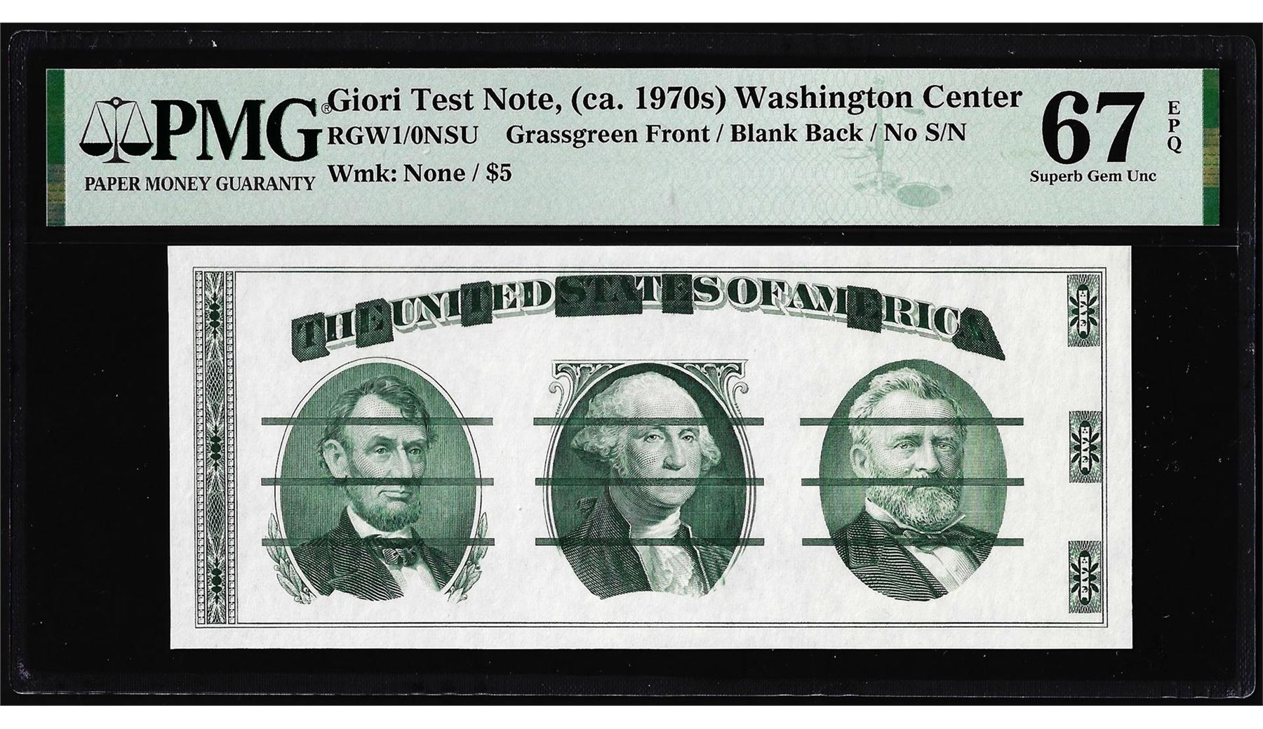 Circa 1970's Washington Center Giori Test Note PMG Superb Gem Uncirculated 67EPQ