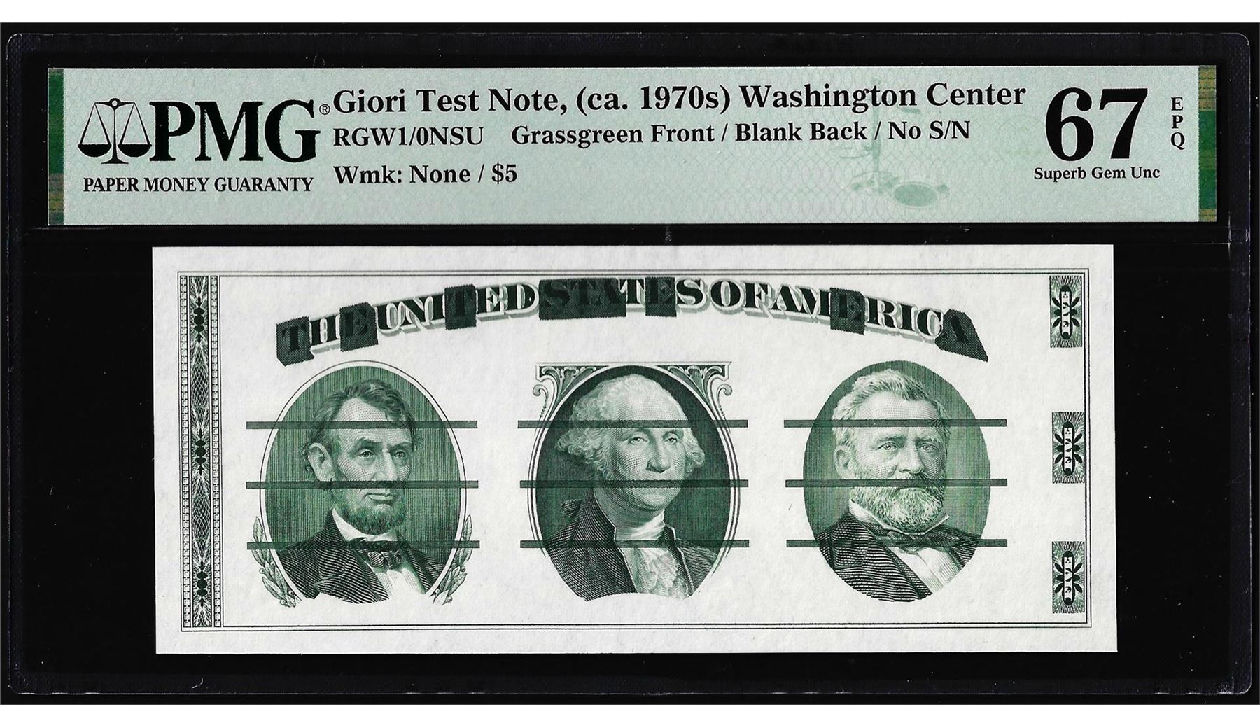Circa 1970's Washington Center Giori Test Note PMG Superb Gem Uncirculated 67EPQ
