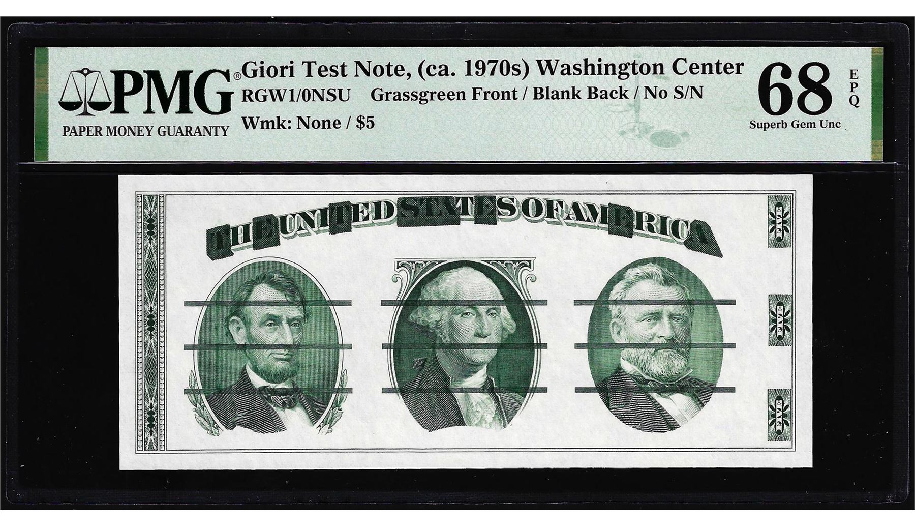 Circa 1970's Washington Center Giori Test Note PMG Superb Gem Uncirculated 68EPQ