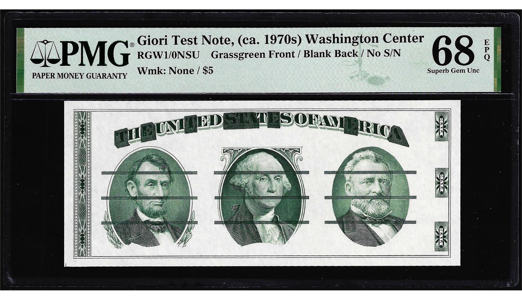 Circa 1970's Washington Center Giori Test Note PMG Superb Gem Uncirculated 68EPQ