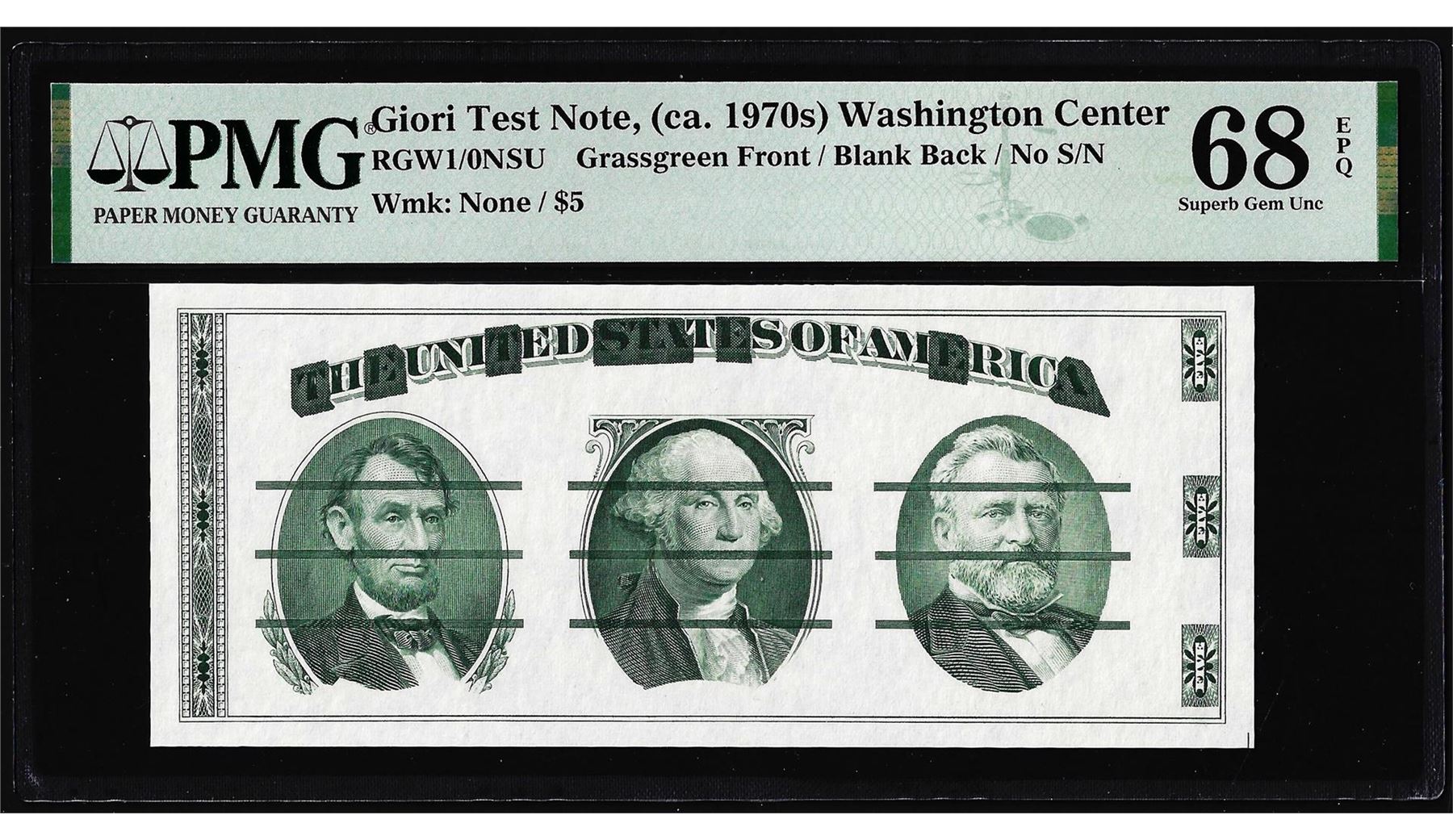 Circa 1970's Washington Center Giori Test Note PMG Superb Gem Uncirculated 68EPQ