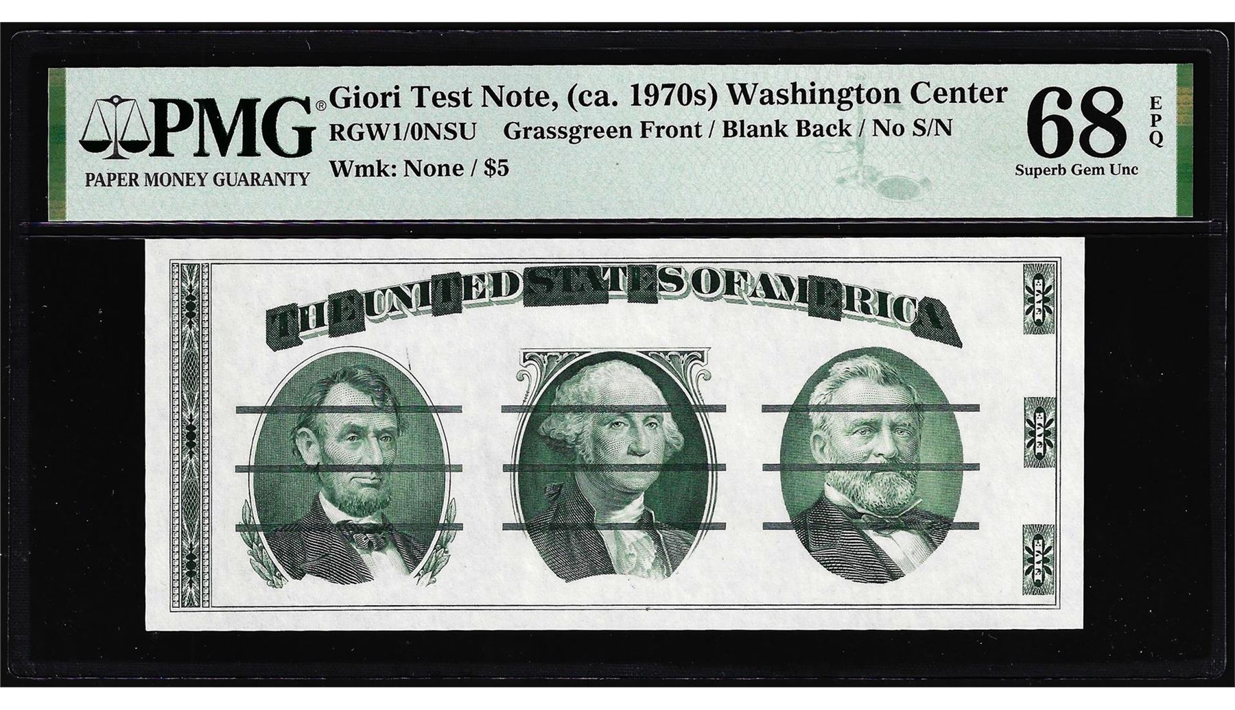 Circa 1970's Washington Center Giori Test Note PMG Superb Gem Uncirculated 68EPQ