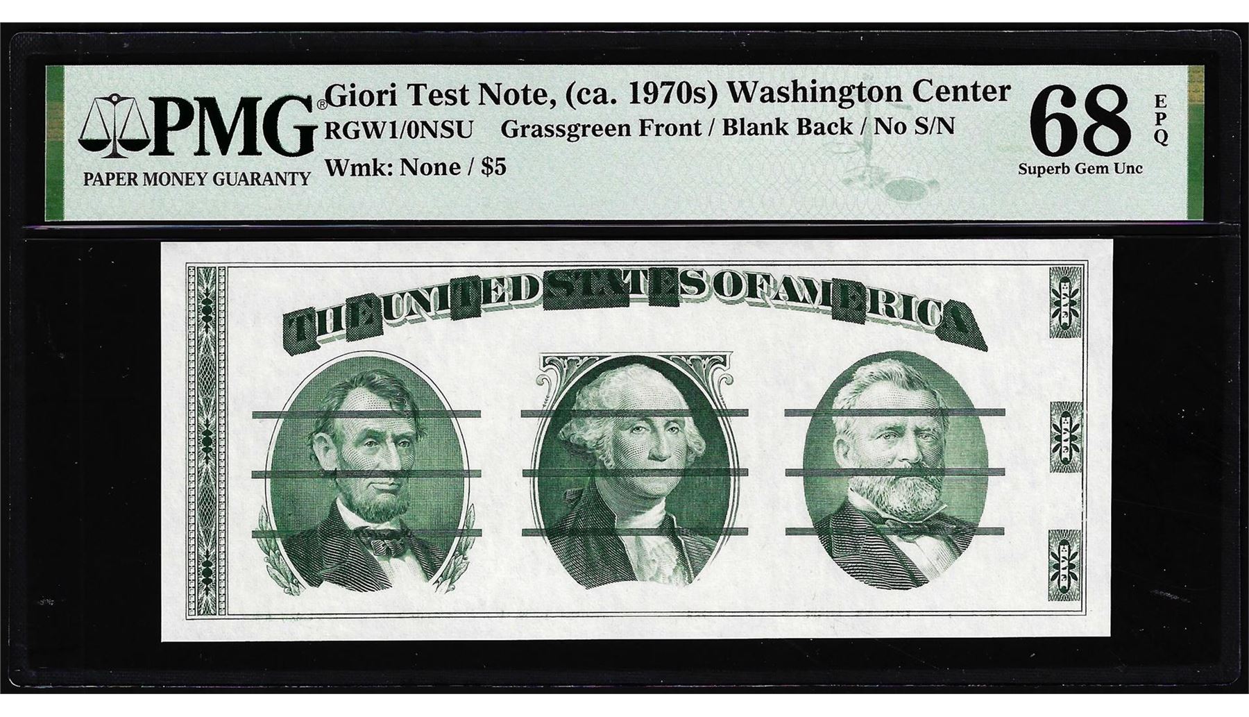 Circa 1970's Washington Center Giori Test Note PMG Superb Gem Uncirculated 68EPQ