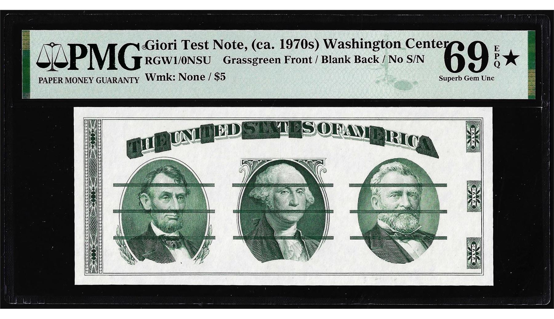 Circa 1970's Washington Center Giori Test Note PMG Superb Gem Uncirculated 69EPQ STAR