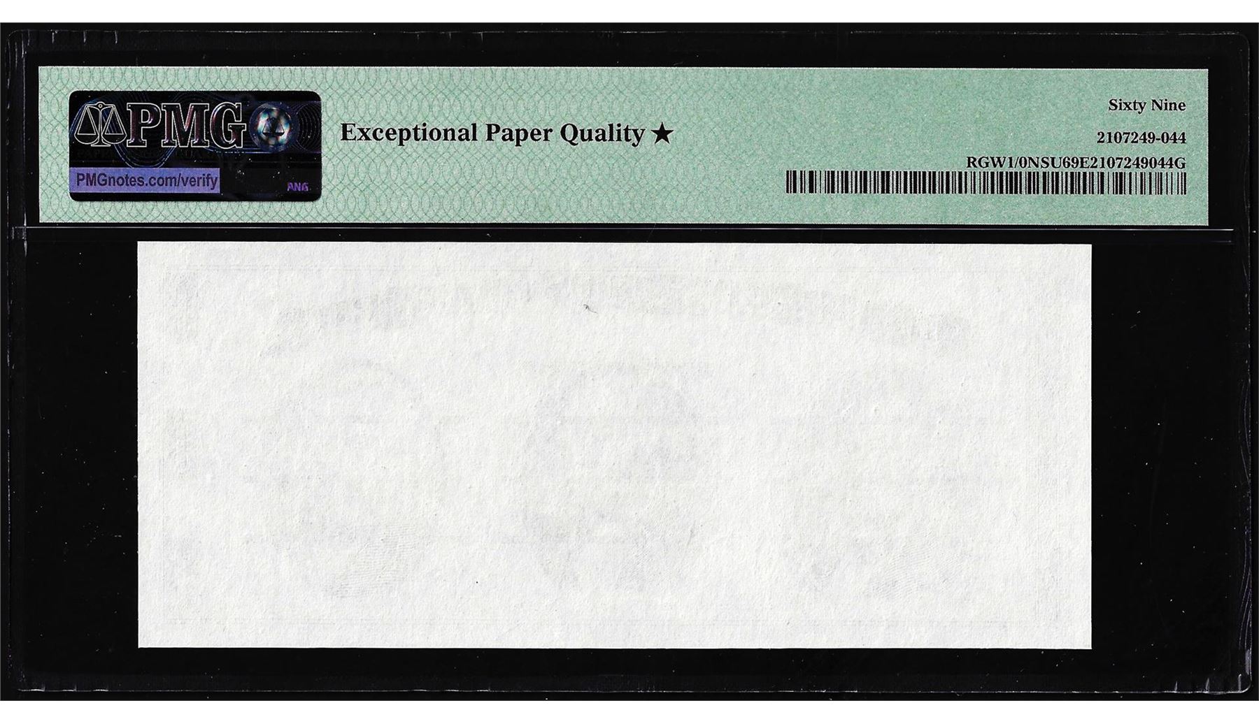 One Circa 1970's Washington Center Giori Test Note PMG Superb Gem Uncirculated 69EPQ STAR. PMG Certified.
