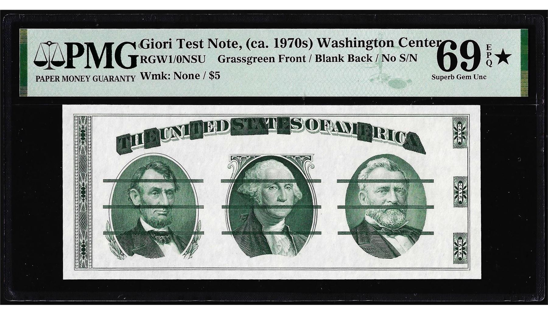 Circa 1970's Washington Center Giori Test Note PMG Superb Gem Uncirculated 69EPQ STAR