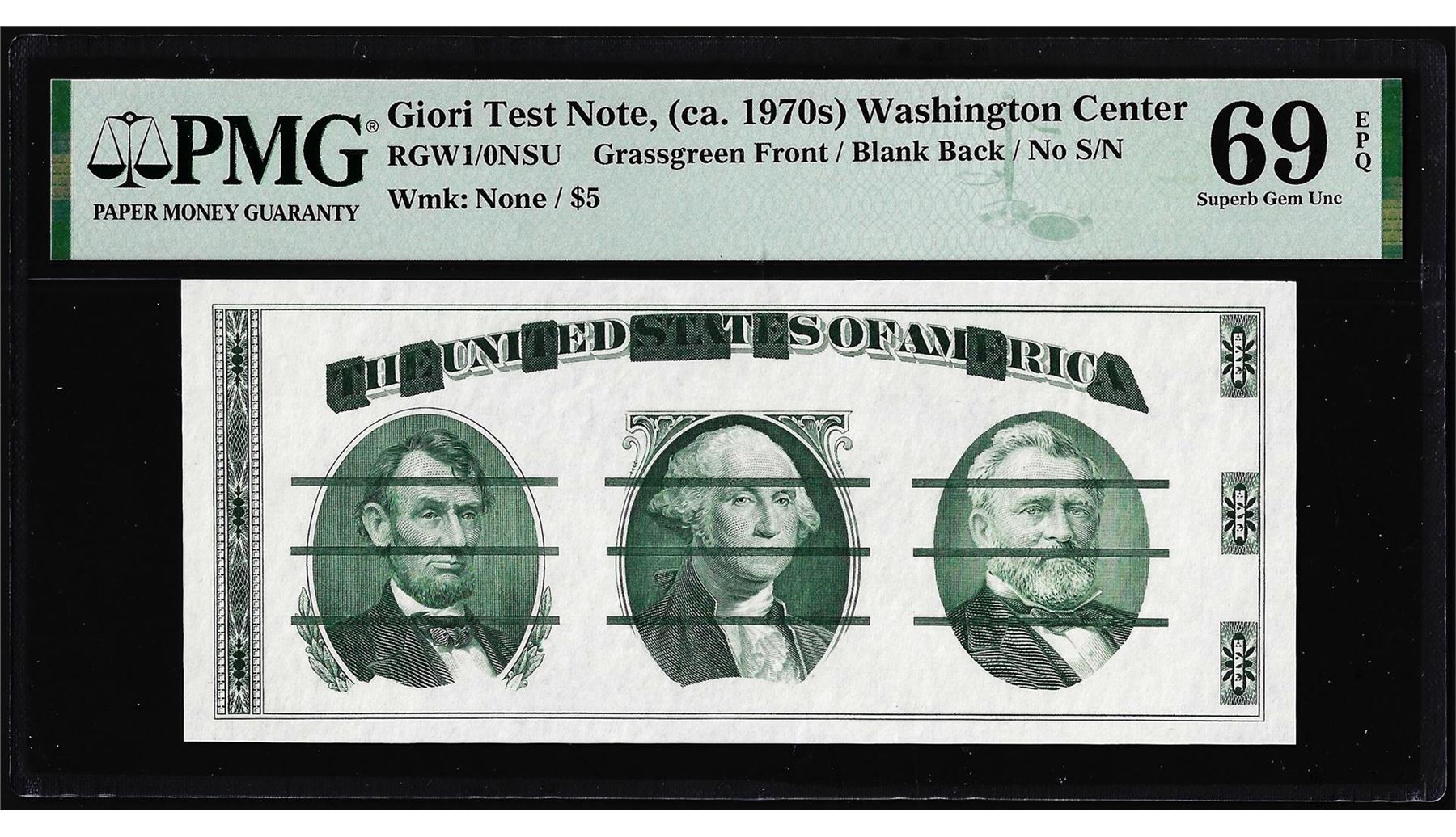Circa 1970's Washington Center Giori Test Note PMG Superb Gem Uncirculated 69EPQ