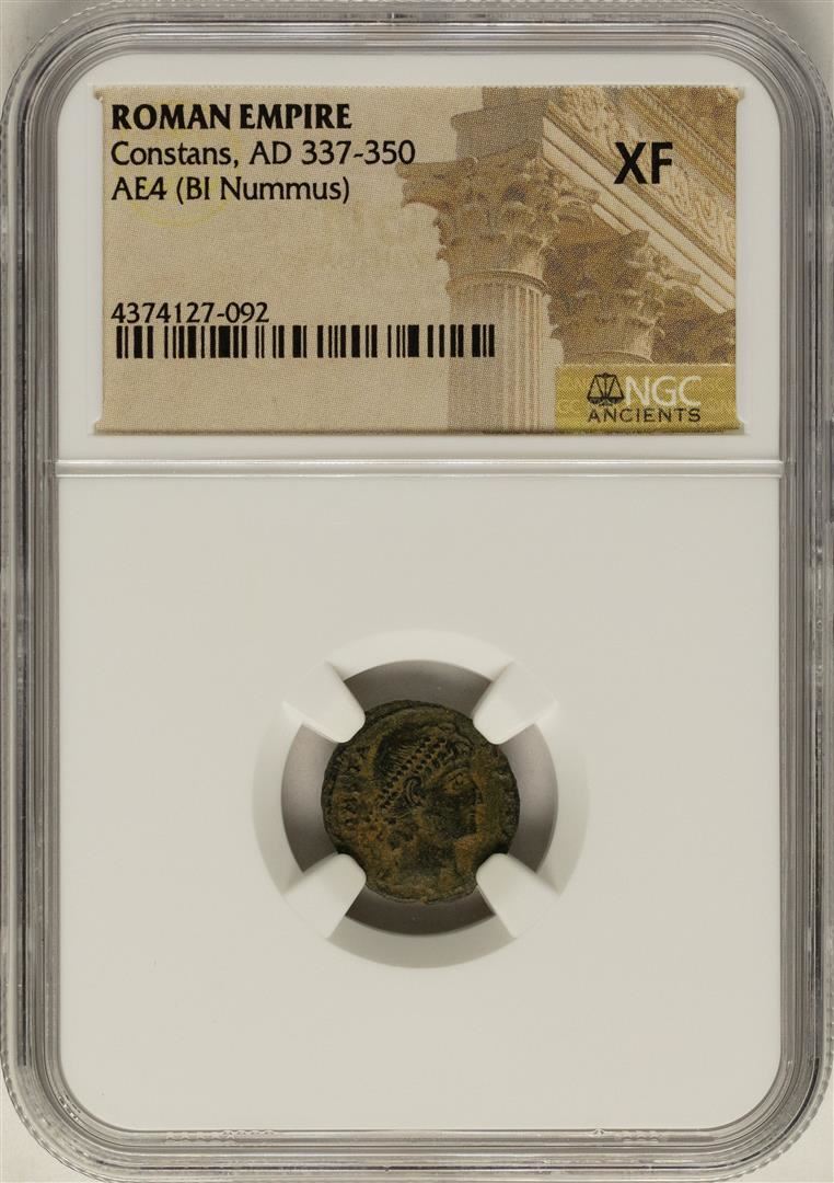 One Constans, 337-350 AD Ancient Roman Empire Coin NGC XF. NGC Certified.