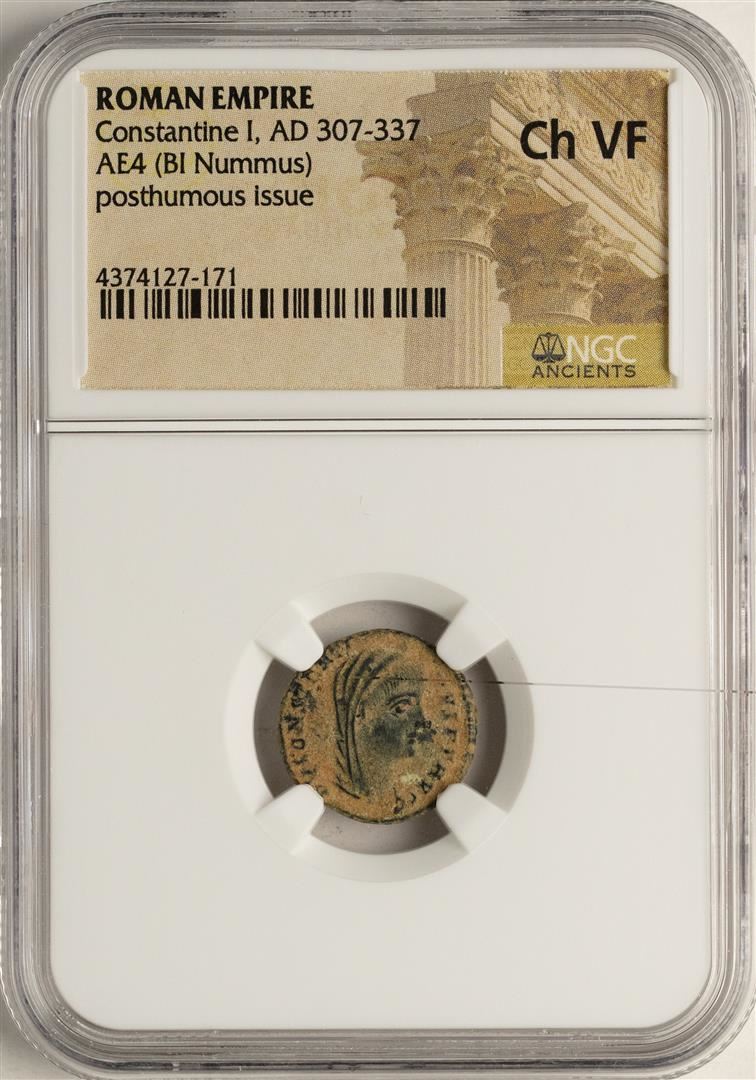 One Constantine I, 307-337 AD Ancient Roman Empire Coin NGC Ch VF. NGC Certified.