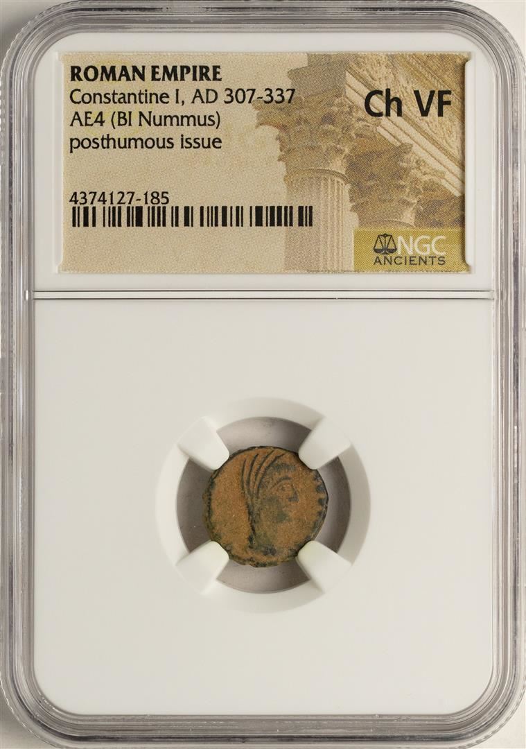 One Constantine I, 307-337 AD Ancient Roman Empire Coin NGC Ch VF. NGC Certified.