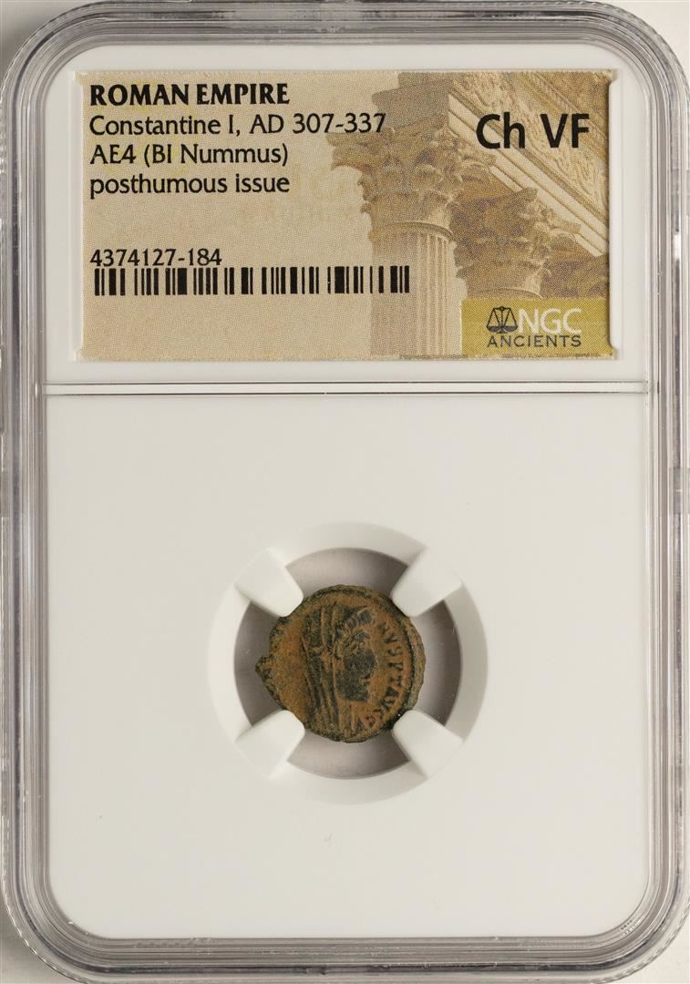 One Constantine I, 307-337 AD Ancient Roman Empire Coin NGC Ch VF. NGC Certified.