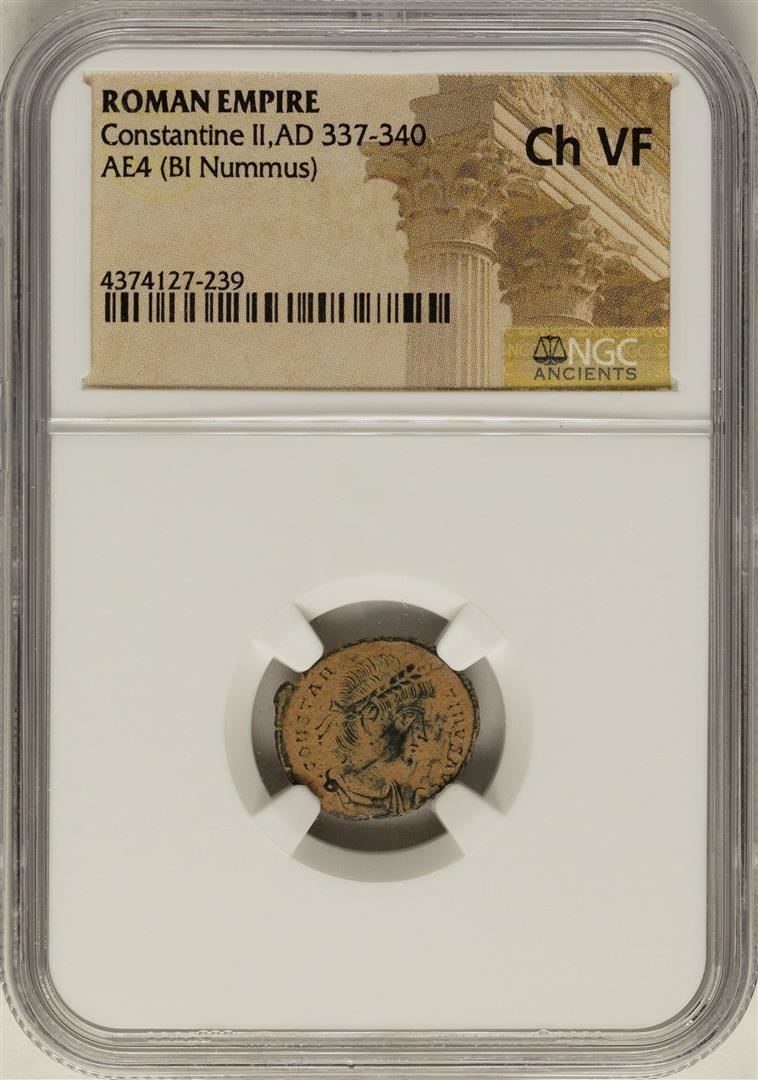 One Constantine II, 337-340 AD Ancient Roman Empire Coin NGC Ch VF. NGC Certified.